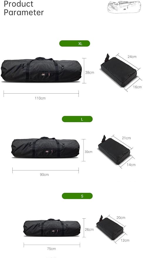 Large Capability Folding Tent Storage Carry Bag Waterproof Luggage Pack Pouch for Camping Hiking Picnic Organizer Walking Holder (Black-XL)