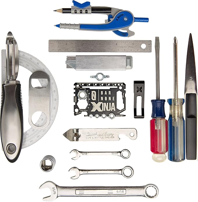 - 🔧 EXQUISITELY FUNCTIONAL ★ Packs 50 tools into a credit card sized multi-tool including screw drivers, rulers, dividers, hex bit driver, smartphone stand, wrenches, letter opener, nail puller, spoke keys, bottle opener, protractor, can opener, conversion charts, and more!