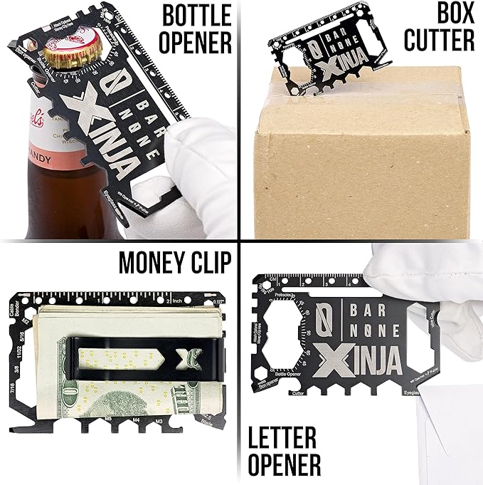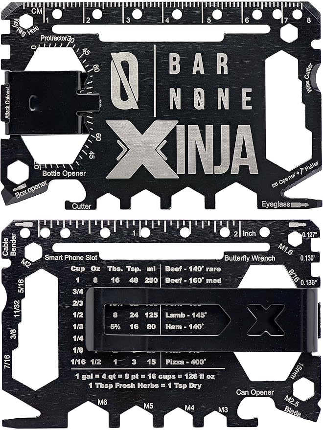 - ✅ THE BEST, BAR N0NE ★ XINJA CREDIT CARD MULTITOOL MONEY CLIP ★ The BAR N0NE Xinja Designed in Friendswood, TX, USA, heat treated 420 stainless steel, and weighs less than any other card tool at only 27 grams, or 37 grams with Money Clip Installed.