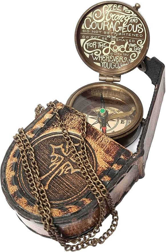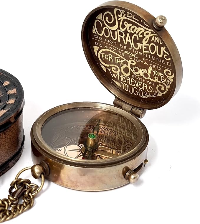 - Product Specifications: The vintage compass is engraved with the verse ‘‘BE Strong AND COURAGEOUS DO NOT BE FRIGHTENED and DO NOT BE DISMAYED YOUR GOD FOR THE LORD IS WITH YOU WHEREVER YOU GO - Joshua 1:9’’. It measures 3.98 x 3.5 x 1.65 inches and weighs 0.19 kilograms.