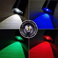 - 【4 Color in 1 LED Light】 This RGBW 4 in 1 LED flashlight has 4 individual LED light source(Red, Green, Blue, White), and the brightness is up to 50000 lumens, the farthest illumination distance is up to 250 yards. 4 in 1, save your money, no need to buy four kind of flashlights.