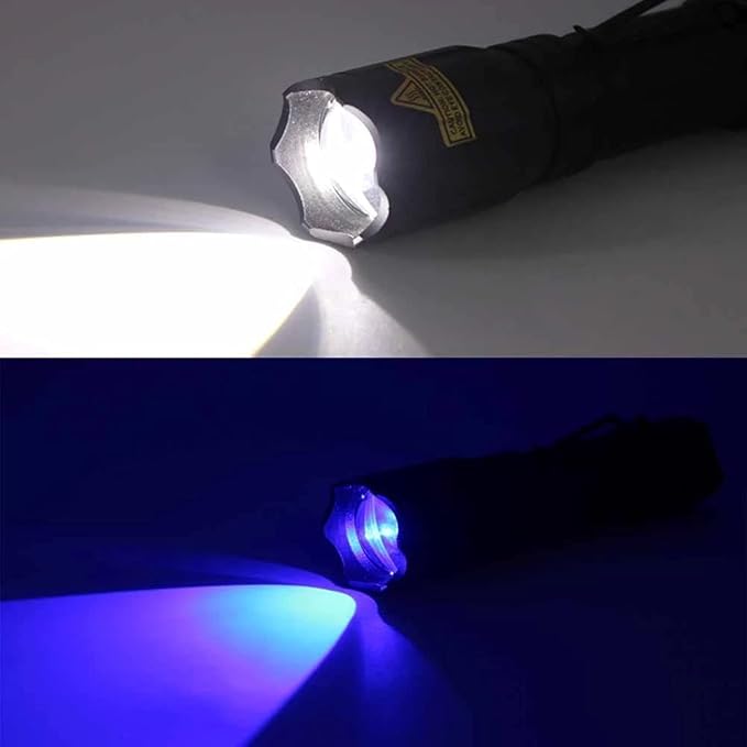 - 【Compact Size & wide Application】: 5.1"*1.3" in size, the portable flashlight is perfect for outdoor activities. Bright white light for daily lighting, Blue light for fishing, Red light is also widely used in Astronomy, Aviation, Night Observation. Blue Light is widely used in fishing.