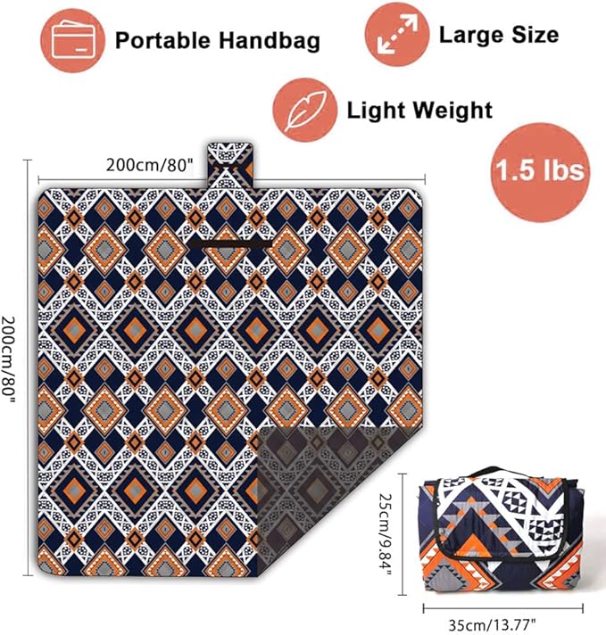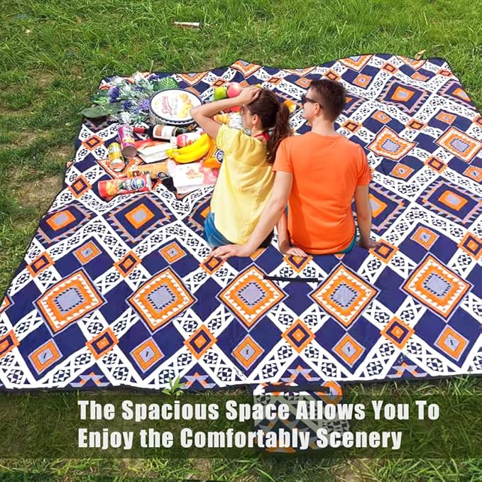 - 💦【Large Space & Easy to Fold & Lightweight】The 79" x 79" size picnic blanket is suitable for 4-6 adults. With handles for easy carry and transport, simply rolls for storage in the included storage bag, measures 9.87" x 13.77" when folded, and weighs just 1.5 lbs