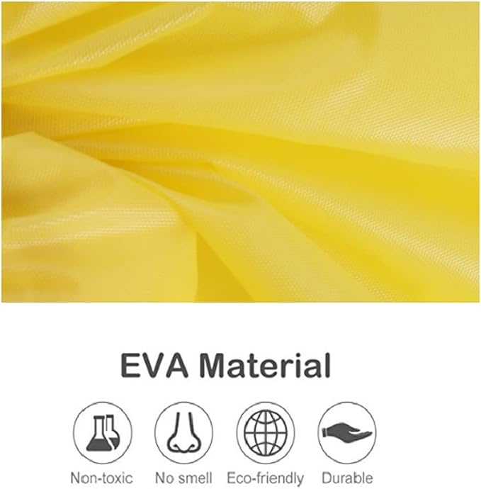 - ✅Eco-friendly and Waterproof: The rain poncho is made of enviroment friendly EVA material that is soft, quick drying and non-toxic. It is completely waterproof yet comfortable. It will keep you nice and dry. Welded seams poncho with drawstring hood well protects your head, face, and neck. Its fasteners along the sides ensures the perfect fit and keep your arms dry in rain.