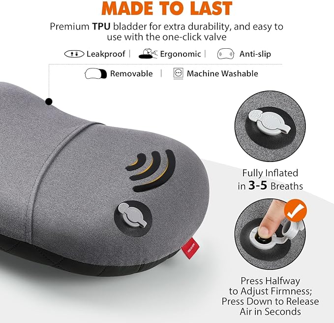 - πππ ππππ πππ πππππππ π ππ πππ ππππππππ: No matter which types of sleepers you are, Hikenture camping pillows for sleeping with the adjustable firmness were designed for your sleep position! Thanks to the patented one-click valve, our blow up pillow only takes 3-5 breaths to fully inflate. Press down the black button of the valve to release air in seconds, and press halfway to adjust the hiking pillow to your favorite firmness.