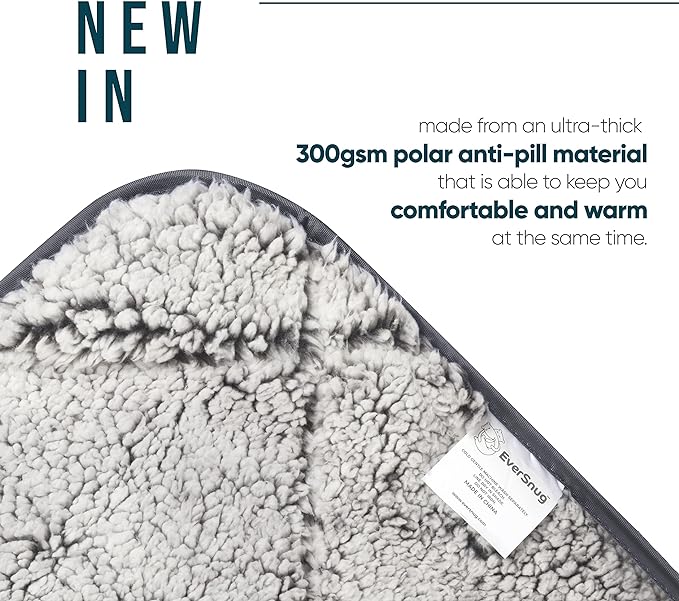 - STAY COZY WITH OUR 300GSM PREMIUM FLEECE: The EverSnug Waterproof Blanket is the thickest, most luxurious sherpa fleece blanket available! It's made from an ultra-thick 300gsm sherpa fleece anti-pill material that will keep you comfortable and warm in any condition. While other blankets are 200-250gsm and won’t be able to keep you warm in extreme conditions, at 300gm our sherpa outdoor blanket is the thickest sherpa fleece lined portable blanket on the market!