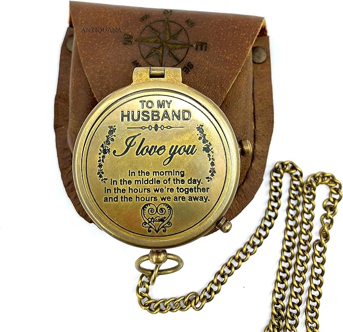 Brass Compass Unique Print To My Husband Compass With Leather Case Antique Brass Compass With Chain A Great Gift Item For Your Loved Ones Hikers And Traveler By