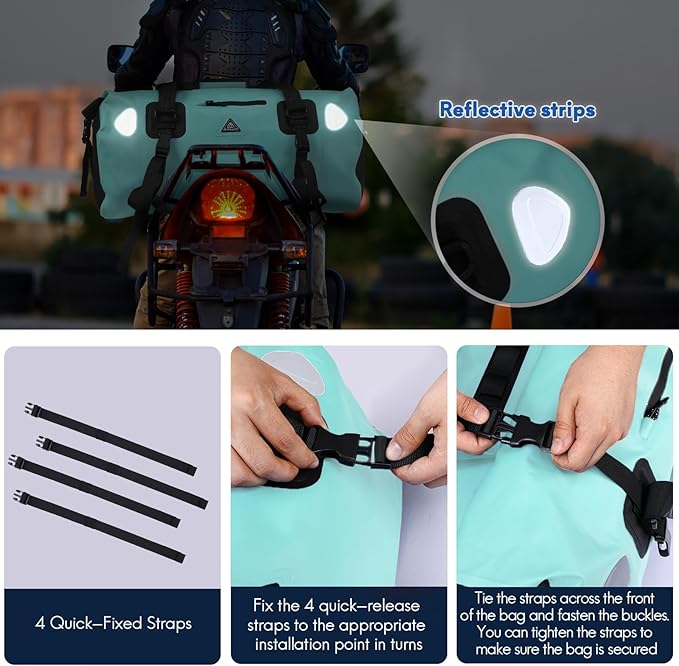 • Easy to Use and Quick Install: The dry duffel bag is equipped with four quick release straps, you can fasten the duffle bag anywhere, it is convenient to fasten on motorcycles, boats, kayaks and bikes, easy to clean and wipe, and instantly bright