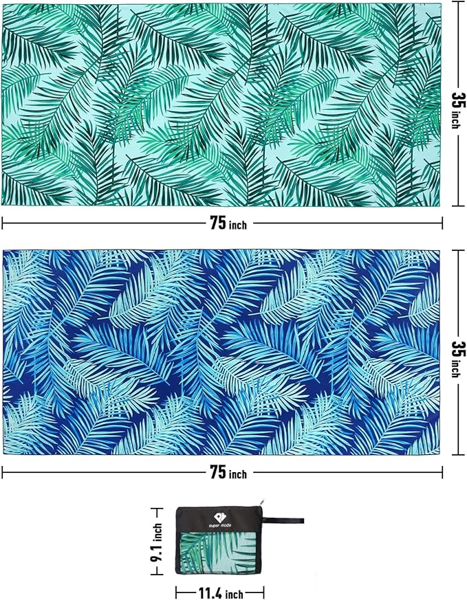- 【Package Includes】The beach towel set comes with 2 different colors and a carrying bag. Our beach towel have many patterns for you choice,such as tropical leaves,coconut tree, stripes, mandala.