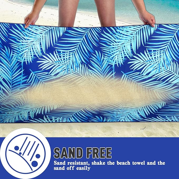 - 【Sand Free】The beach towel can be directly covered on the sand or grass, when not in use you can quick shake off the sand due to the smoother surface. What’s more, the microfiber beach towel is also soft and comfortable to touch.