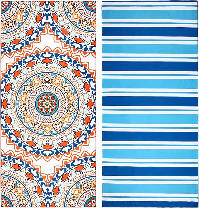 - 【Package Includes】The beach towel set comes with 2 different colors and a carrying bag. Our beach towel have many patterns for you choice,such as tropical leaves,coconut tree, stripes, mandala.