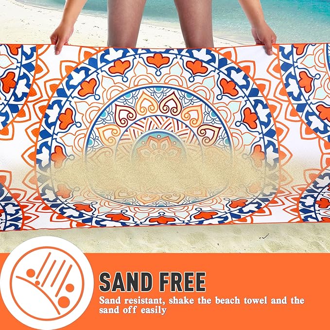 - 【Sand Free】The beach towel can be directly covered on the sand or grass, when not in use you can quick shake off the sand due to the smoother surface. What’s more, the microfiber beach towel is also soft and comfortable to touch.