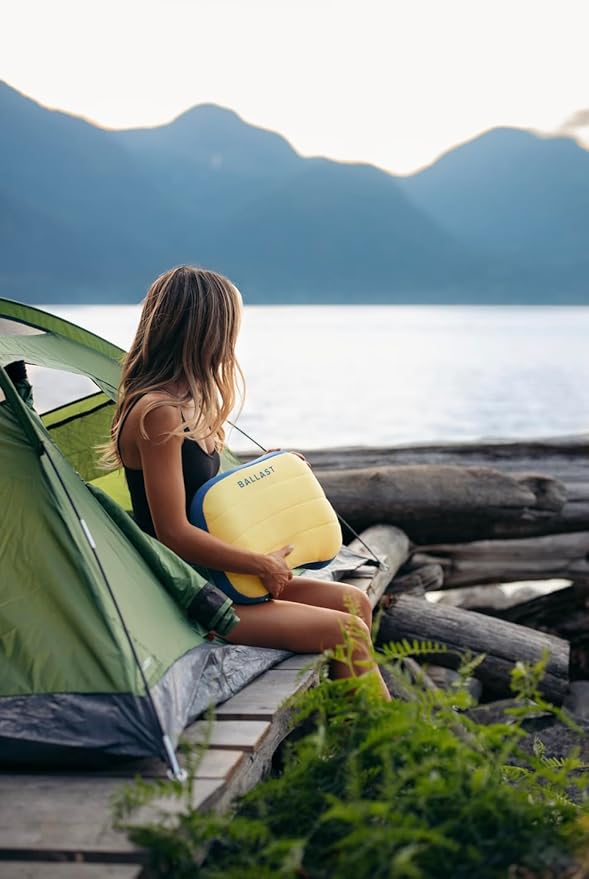 Ballast Beach Pillow – Inflatable Beach Pillow, Camping Pillow, Pool Pillow, Ultra Soft and Durable Pillow That Won’t Blow Away on Windy Beaches (Sunshine Yellow)