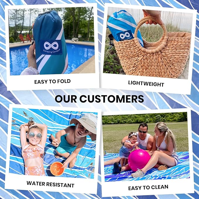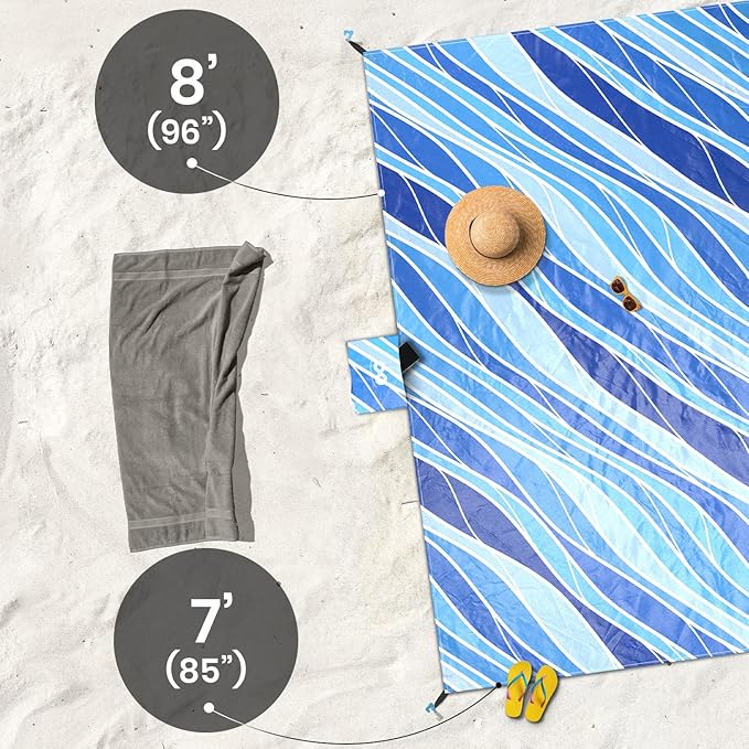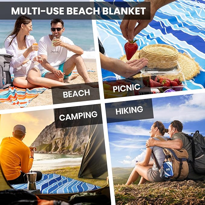 • Waterproof and Sandproof Large Beach Blanket: Shake off liquids and debris easily for a hassle-free beach experience. Keeps all your beach stuff & beach supplies sand-free