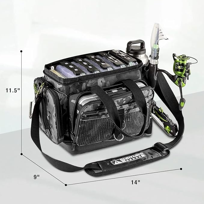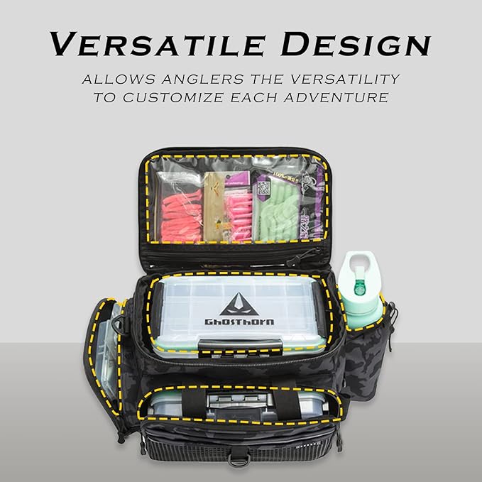 - 【Multiple Uses】The Ghosthorn fishing tackle bags can be easily adjusted as a hand bag or a sling shoulder tackle bag. You can even carry all of your fishing gear in separate compartments. The all-over pockets are ideal to keep your most-used tools within easy reach. It also works perfectly as a fishing tackle box bag, camping bag, hunting bag, hiking bag, or travel bag.