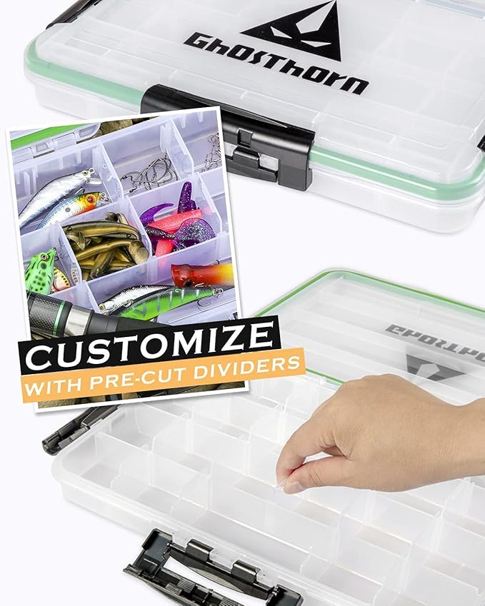 Ghosthorn Fishing Tackle Box, Waterproof 3600 and 3700 Tackle Trays, Plastic Tackle Box Organizer with Removable Dividers Storage Lure Box for Lures 1 and 4 Pack