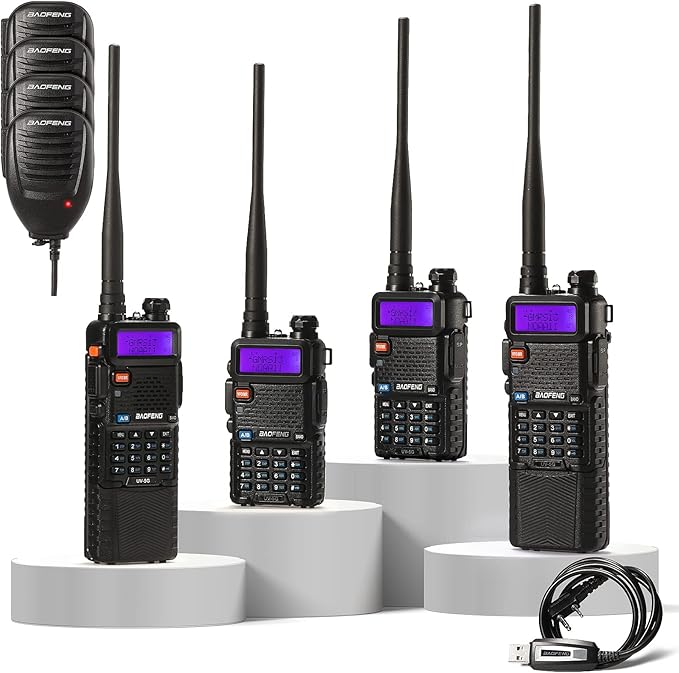 4 Pack BAOFENG UV-5X (UV-5G) GMRS Radio, Long Range Walkie Talkies with 2 Pcs 3800mAh Battery, Two Way Radio with Speaker Mic, GMRS Handheld Radio for Adults, Support Chirp & NOAA