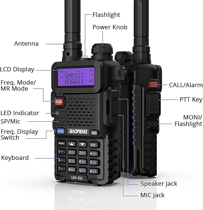 - [Simple Operation] Easy to read with LCD tri-color display. Most basic settings are accessed via the Menu and Keypad. VOX hands-free operation, 128 Channels, 50 CTCSS tones and 104 DCS. More advanced settings are available when connected to your computer. Support CHIRP, chose “UV-5X (GMRS version) (use Radioddity UV-5G))".