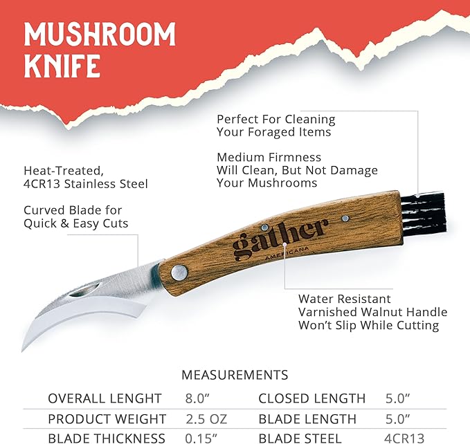 - 🔪 MUSHROOM KNIFE WITH INTEGRATED BRUSH: Our mushroom foraging kit includes a specialized mushroom knife, featuring an integrated brush for delicate cleaning and careful harvesting.
