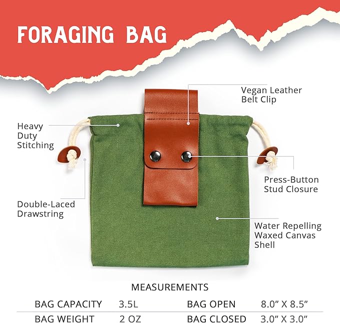 - 🌳 STURDY MUSHROOM FORAGING BAG: Safely store your collected mushrooms in our durable mushroom foraging bag. Built to last, its robust construction ensures your foraging finds are secure.