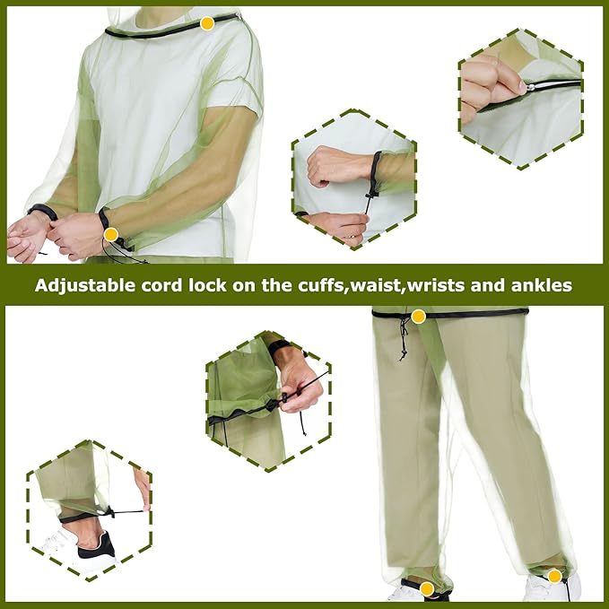 - TRAVEL COMPANION - This mosquito suit is the perfect travel companion. The included carrying pouch ensures easy storage and transport wherever you go. Don't let bugs ruin your trip - pack this mosquito suit set and enjoy your travels with peace of mind.