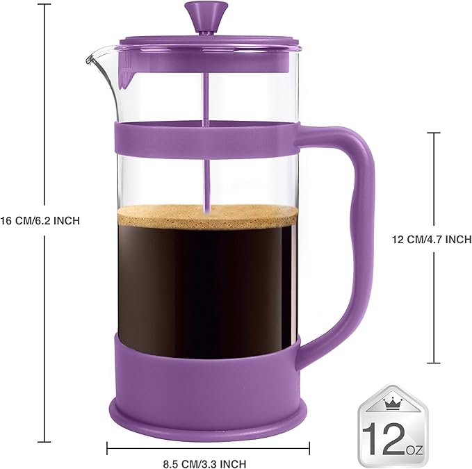 Utopia Kitchen 12 Ounce 0.35 Liter French Press Coffee Maker, Tea Maker, Travel Coffee Presses, Heat Resistant Thickened Borosilicate Coffee Pot for Camping Travel Gifts, Plum Pack of 1