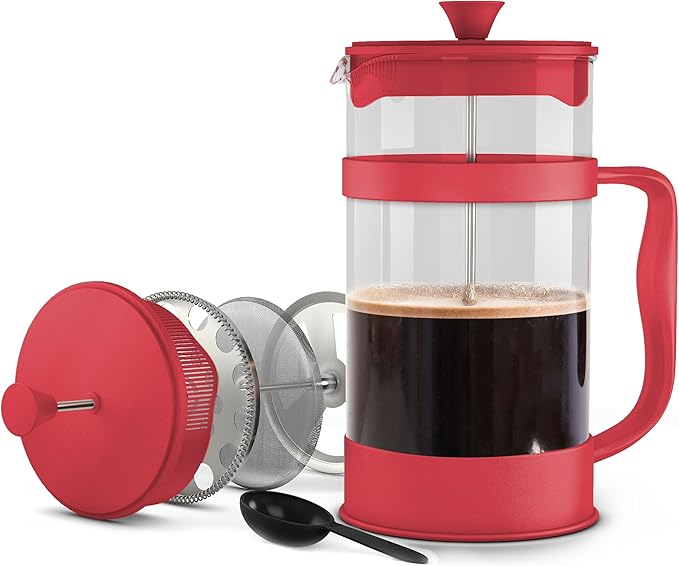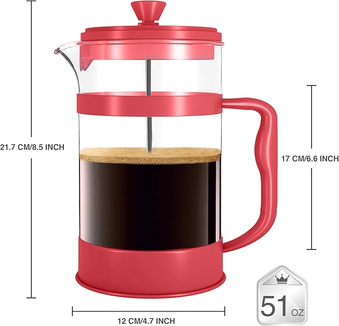 Utopia Kitchen 51 Ounce 1.5 Liter French Press Coffee Maker, Tea Maker, Travel Coffee Presses, Heat Resistant Thickened Borosilicate Coffee Pot for Camping Travel Gifts, Red Pack of 1