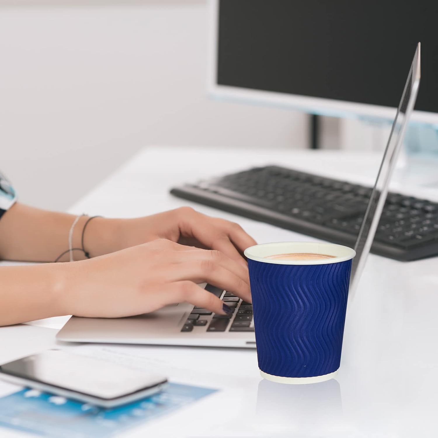 JollyPack 120 Pack 8 oz Paper Coffee Cups, Blue Disposable Beverage Cups with Insulated Ripple Wall for Coffee, Tea, and Hot Chocolate