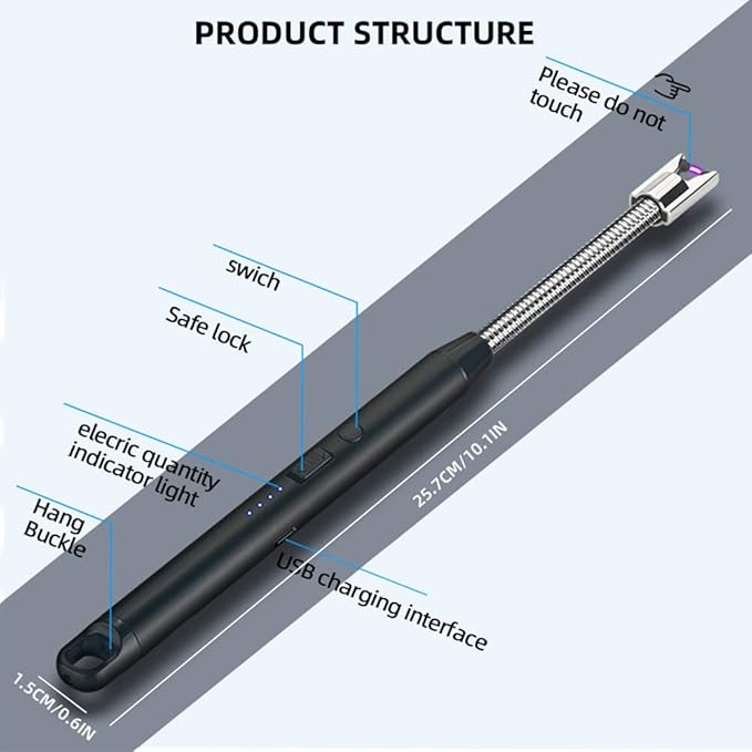 - 【Windproof And Flameless】:The electric lighter adopts plasma arc windproof and flameless technology,no flame,no butane, no trouble. The candle lighter is suitable for strong wind and damp environment, the electric candle lighter is an ideal lighting tool for you to use outdoors.Compared with other arc igniters,the noise is lower.
