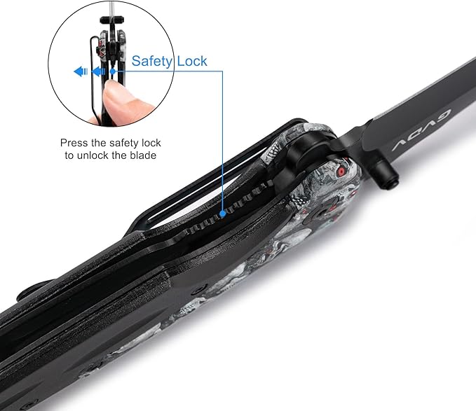 GVDV Utility Pocket Knife with 7Cr17 Stainless Steel - Folding Knife for EDC Outdoor Camping Hunting, Liner-Lock, Clip, Seatbelt Cutter, Glass Breaker for Emergencies, Men Gifts, White Skull