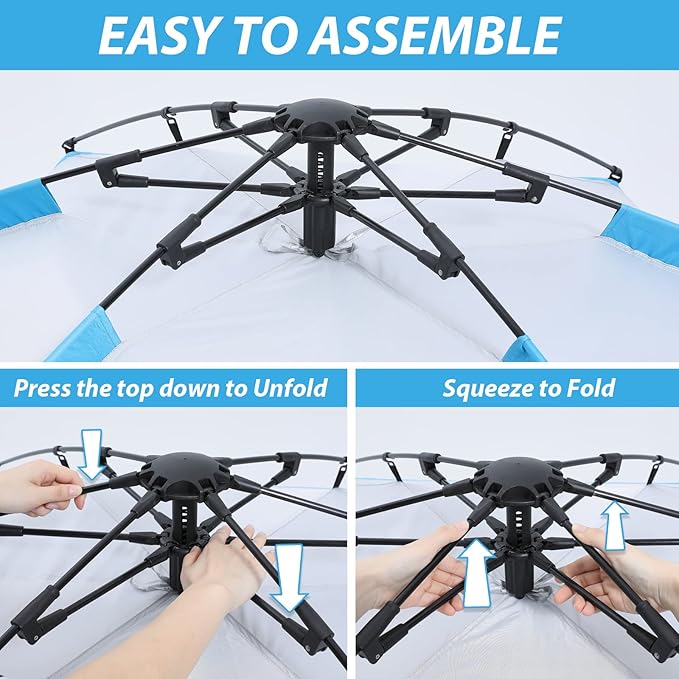 - 🏆Easy to Set up & Take down: Our beach tent comes with an Automatic Folding System. “one press” to unfold,“one squeeze” to fold, no assembly required, save time and effort, lightweight and stable, not easily damaged. easily damaged.