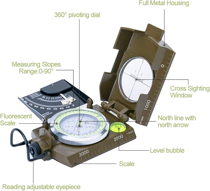 - ✅【PROFESSIONAL GRADE】: This professional grade military compass will always lead you in the right direction.Ideal for motoring, boating, camping, mountaineering, exploring, hunting, marine, military usage, geologyand other outdoor activities. Can be used for positioning, orienting on a map, outdoor activities and so on.