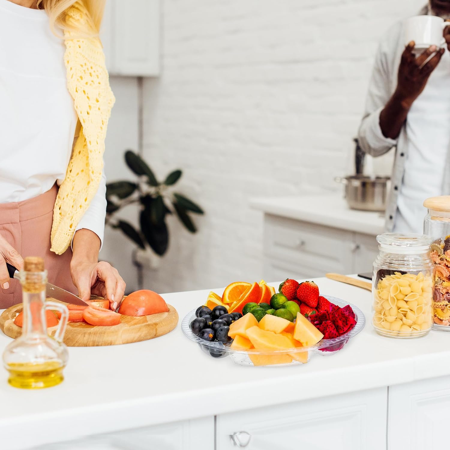 12 Pack Round Plastic Veggie Tray with Lid Fruit Tray 6 Divided Compartment Container Food Serving Dip Platter Reusable Catering Trays for Veggie Fruit Snack Party and Buffet Trays(Clear,12inch)