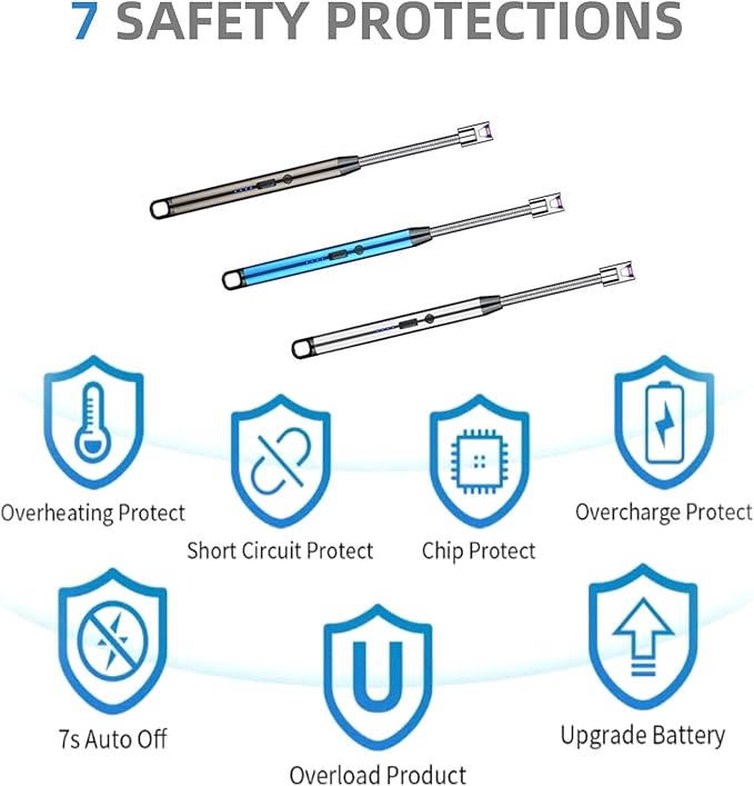 - 【Child Protection】:The arc lighter has a child protection function.You need to turn on the power switch before you can ignite,The candle Lighter will automatically cut off power for 8 seconds.The usb lighter with overcharge protection,overvoltage protection,and temperature protection,it can extend battery life.