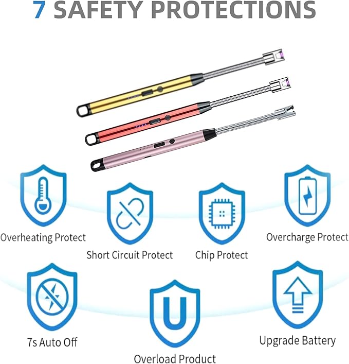 - 【Child Protection】:The arc lighter has a child protection function.You need to turn on the power switch before you can ignite,The candle Lighter will automatically cut off power for 8 seconds.The usb lighter with overcharge protection,overvoltage protection,and temperature protection,it can extend battery life.
