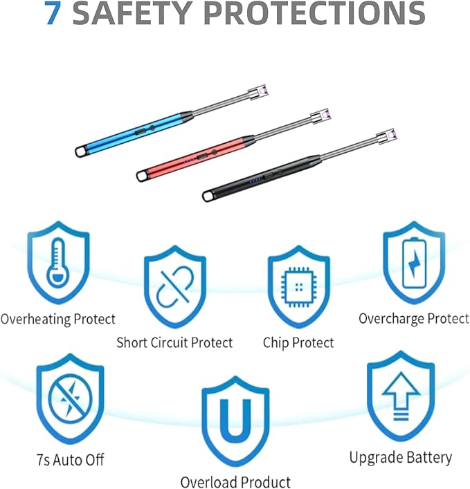 - 【Child Protection】:The arc lighter has a child protection function.You need to turn on the power switch before you can ignite,The candle Lighter will automatically cut off power for 8 seconds.The usb lighter with overcharge protection,overvoltage protection,and temperature protection,it can extend battery life.