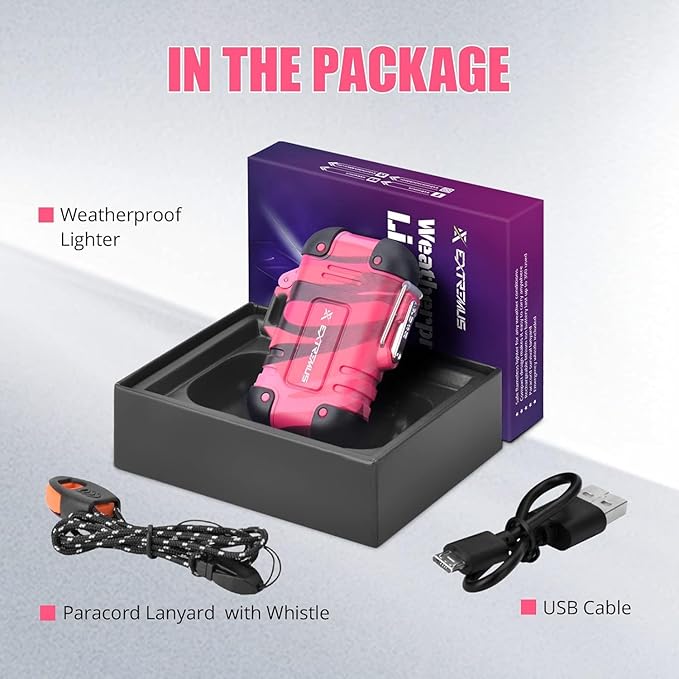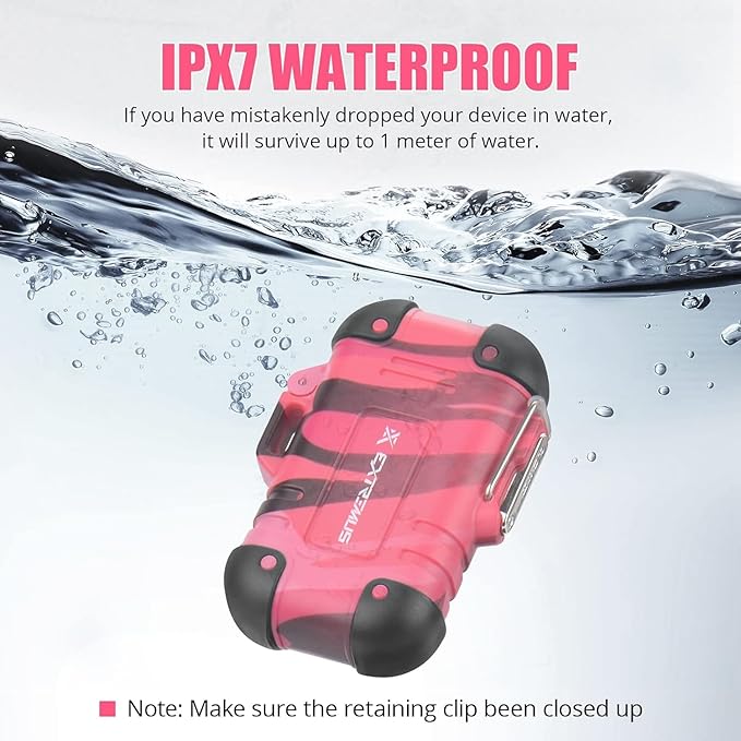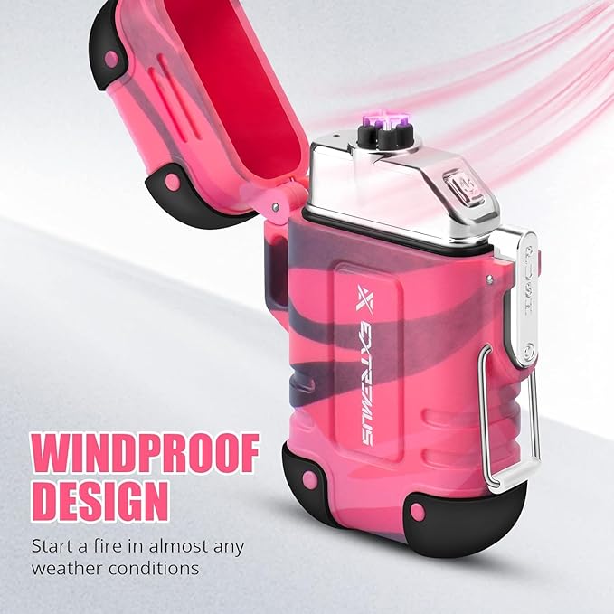 - IPX7 Waterproof Lighter-Extremus waterproof electric lighter can start a fire in the most severe weather conditions. The plasma arc windproof Lighter works well in rainy day and windy day, it is great for camping,travelling and hiking.