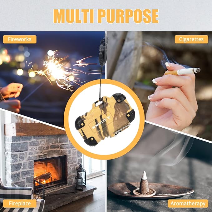 - Multi-Purpose Survival Lighter– This lightweight device includes a paracord lanyard with a whistle should unexpected survival situations arise. Use the flashlight modes to light up your surroundings or signal for help at night. Use the flame-less spark to safely light a candle, cigarette, or camp fire in any weather conditions.