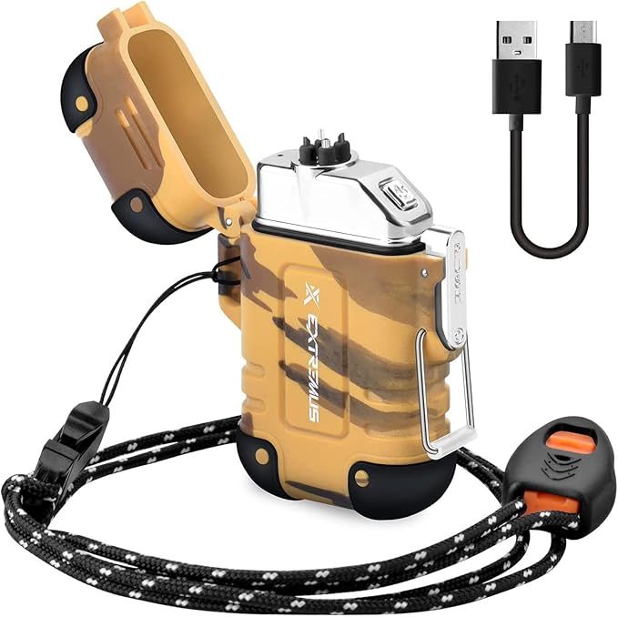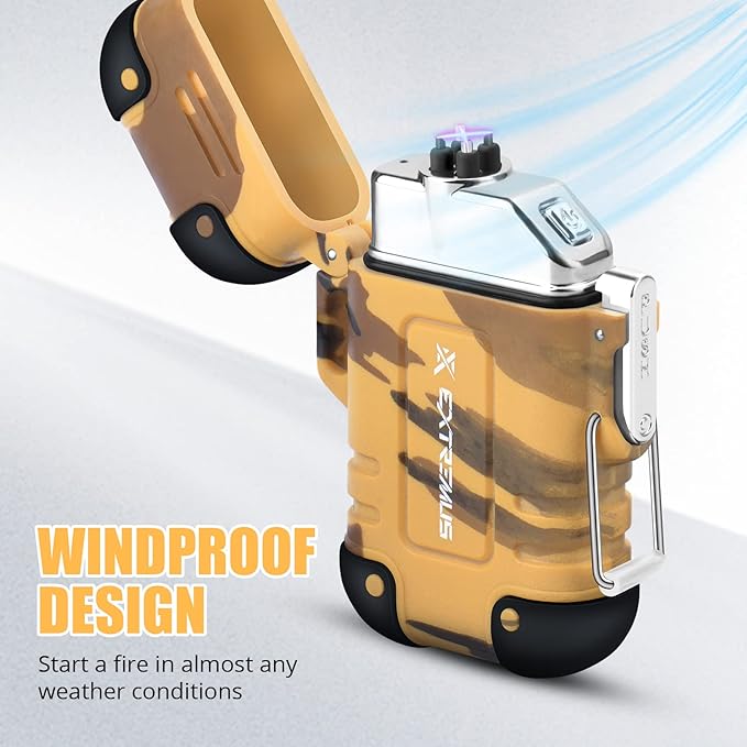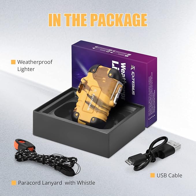 - Key Features of Electric Lighter–IP56 Dust-proof & Waterproof Lighter – Safe flameless Windproof Lighter– 3 mode flashlight camping lighter – Rechargeable lithium ion batteries – Survival whistle and lanyard Rechargeable Lighter– The Extremus tactical lighter is powered by a