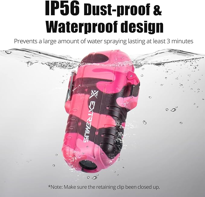- Key Features–IP56 Dust-proof & Waterproof Lighter – Safe flameless Windproof Lighter– 3 mode flashlight camping lighter – Rechargeable lithium ion batteries – Survival whistle and lanyard