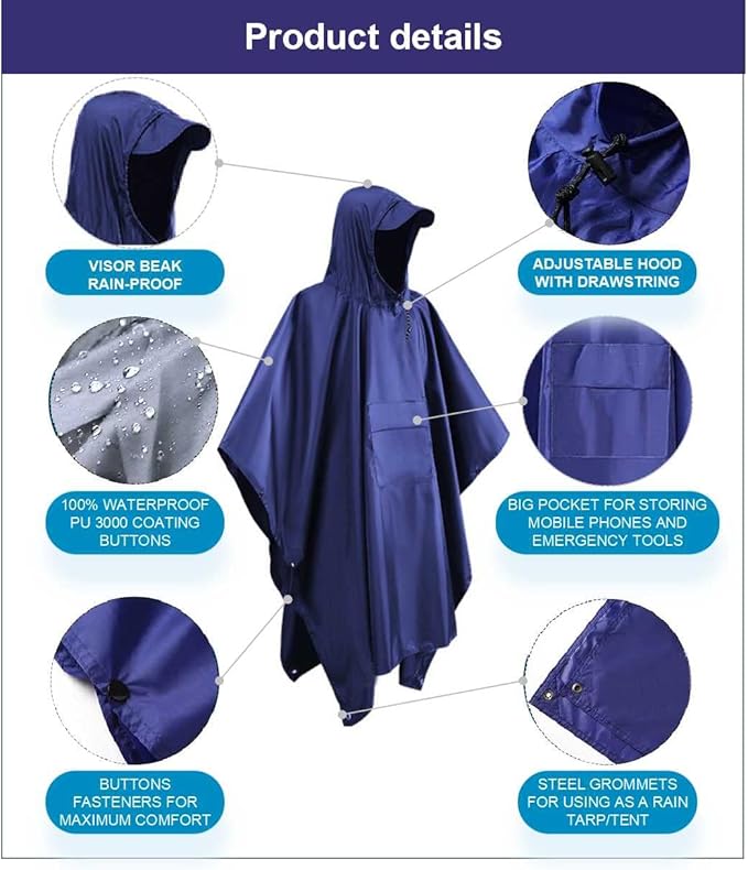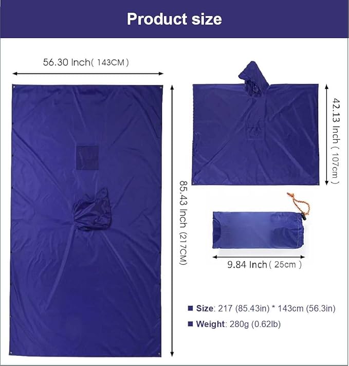 - 【The best choice for outdoor activities】,Portable Hooded Jacket, men's and women's raincoat, one piece for outdoor activities, scientific extended version design, free conversion of dining mat and canopy, rain proof and sun shading, easy to deal with all kinds of rainy weather conditions, experience every special outdoor trip with you, and enjoy the happy fashion of outdoor with you.