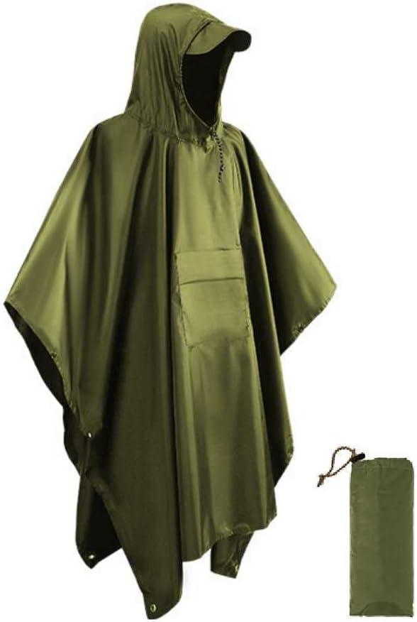 Hooded Rain Poncho Waterproof Raincoat Jacket for Men Women Adults, Military Poncho for Outdoor Activities Camping Fishing
