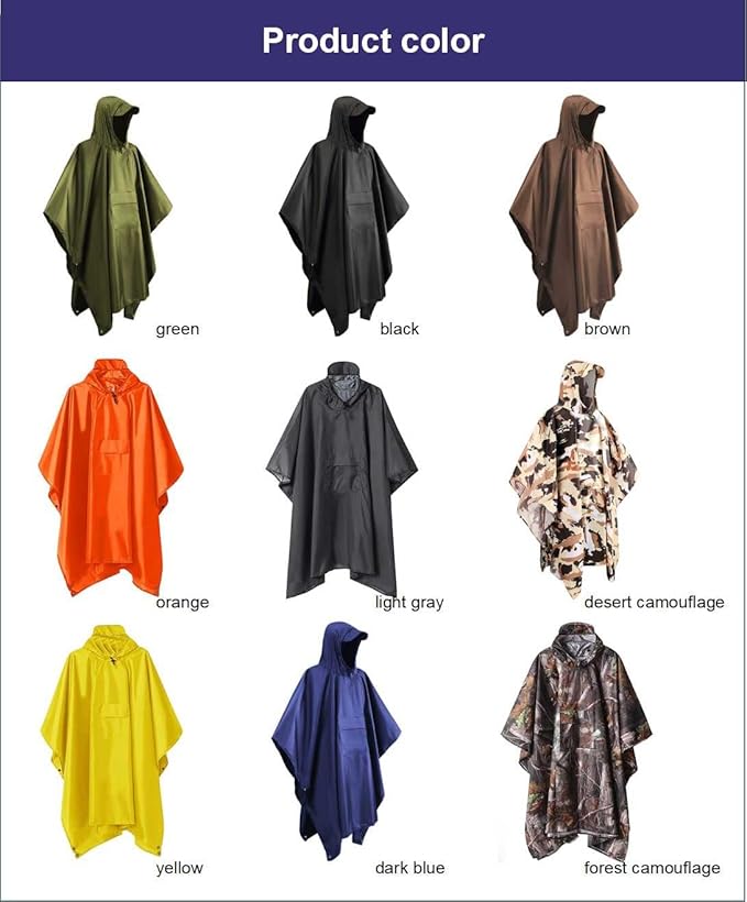- 【Multifunctional】 Our Multifunctional Rainwear can not only be used as a raincoat, but also as a tent, moisture-proof pad, cloak, poncho and jacket. It can also be built into a small canopy to protect against rain and water, avoid direct sunlight and easily deal with all kinds of rainy weather conditions.