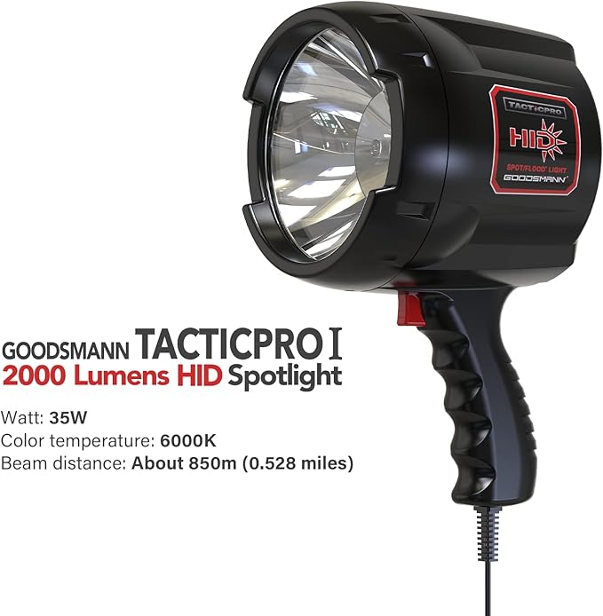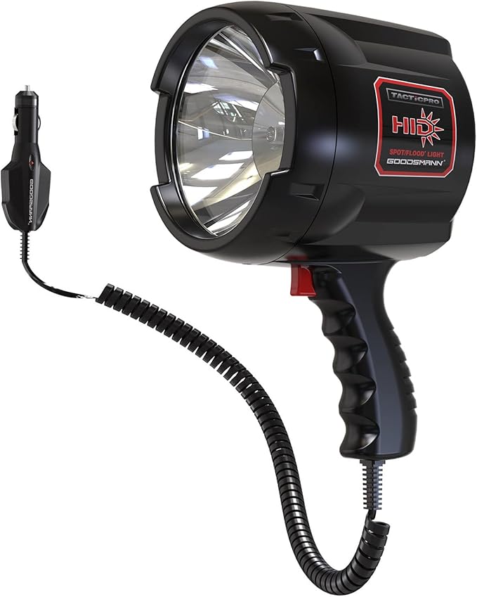 GOODSMANN HID Handheld Adjustable Spotlight/Floodlight 2000 Lumen 12V Plug in Spotlights for Boat Marine Corded Spot Light 929 Yards Car Charger Searchlight for Hunting/Camping/Hiking/Garage/Fishing