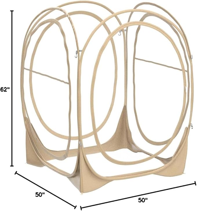- Petented design: it comes with 1 top cover, it provides an all-day UPF 50+ UV protection. With 1 large door and 2 windows, this pod is excellent in air ventilation in hot weather, double-side zippers make it easy to zip from inside and outside alike, easy to get in & out. PE floor keeps the room & your personal belongings clean. Convenient extra hooks for your coat, bag or other items. For strengthen the stability in windy days, this shelter comes with 4 sandbags, 4 guylines and 8 stakes.