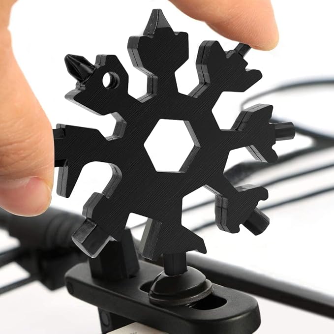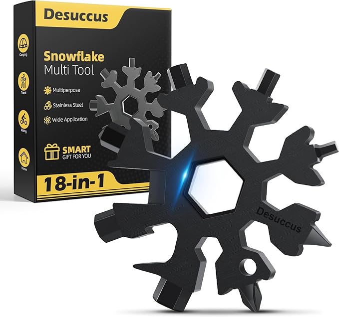 Desuccus 18-in-1 Snowflake Multi Tool, Stainless Steel Snowflake Bottle Opener/Flat Phillips Screwdriver Kit/Wrench, Durable and Portable to Take, Great Christmas Gift(Standard, Black)
