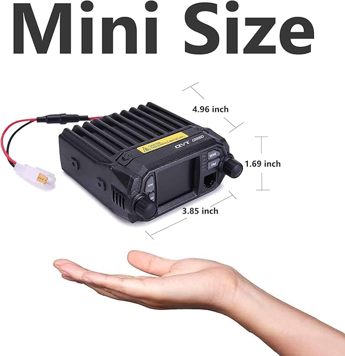 - 3.|Mini Size|As a compact mobile radio (3.85 (W) x 4.96(D) x 1.69 (H)), it is small enough to mount just about anywhere in any vehicle, suitable for outdoor activities such as mountaineering, hiking, camping and so on.
