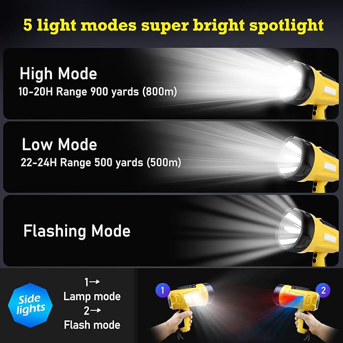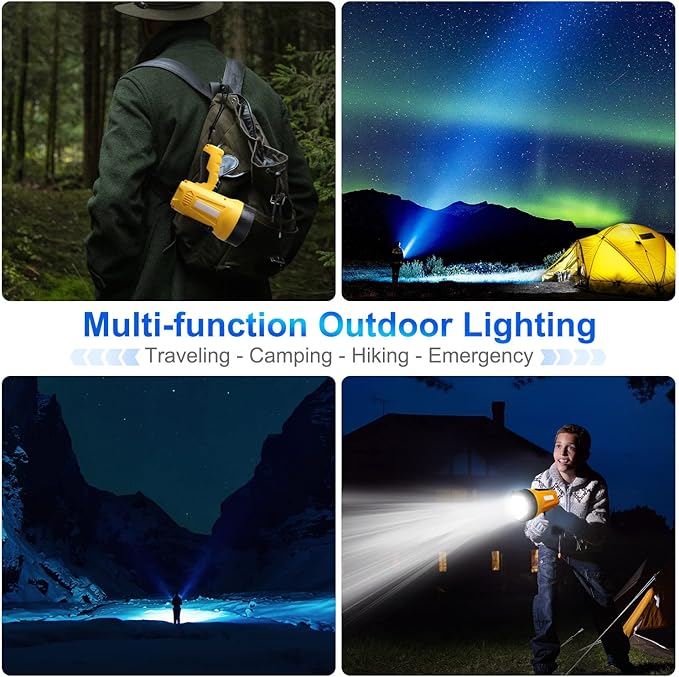 - 【Super Bright Flashlights】The spotlight use an 20-watt High-Performace LED, outputs 10000 lumens, provide 3200 ft distance.