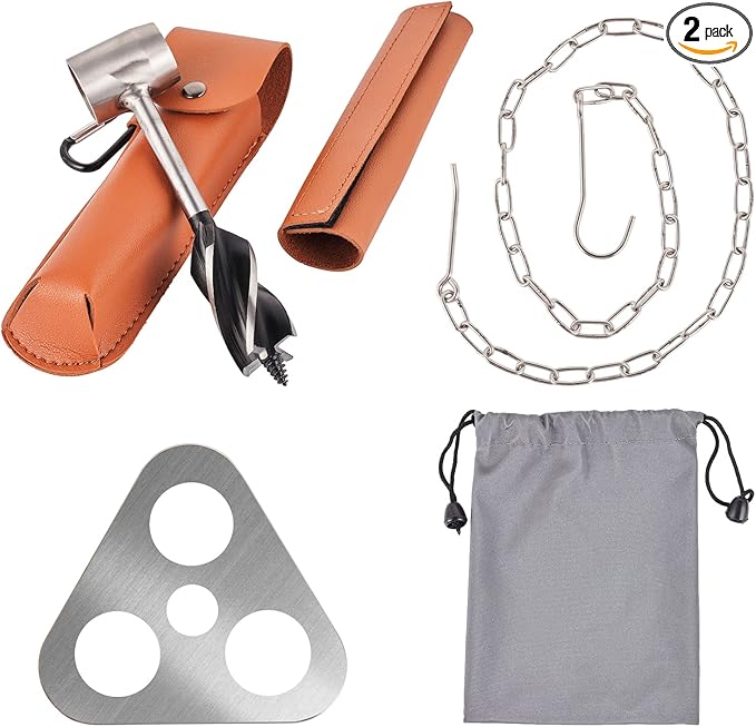 Hand Auger Wrench Survival Tools for Bushcraft - Scotch Eye Wood Drill Bit for Camping Outdoor Wood Peg and Hole Maker, Portable Camping Tripod with Adjustable Chain