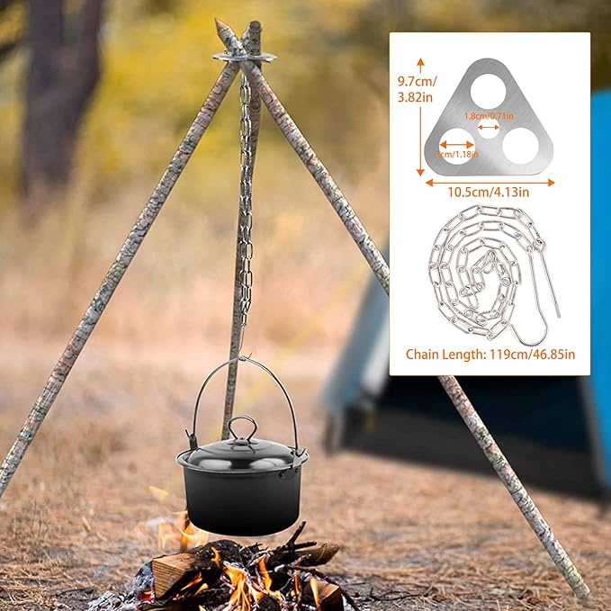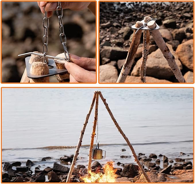 - Good Value for Money: The camping tripod can be combined with branches to create tripods. The hanging chain can be adjusted to a suitable grilling height, making it more convenient for cooking. Enjoy enjoyable camping, picnicking, and barbecue time with family and friends. The detachable campfire tripod is easy to carry and store and can be kept in a storage bag
